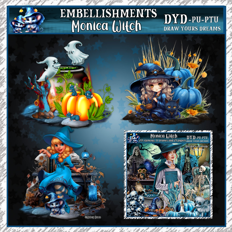 17 cute witches with cat, dog, pumpkin